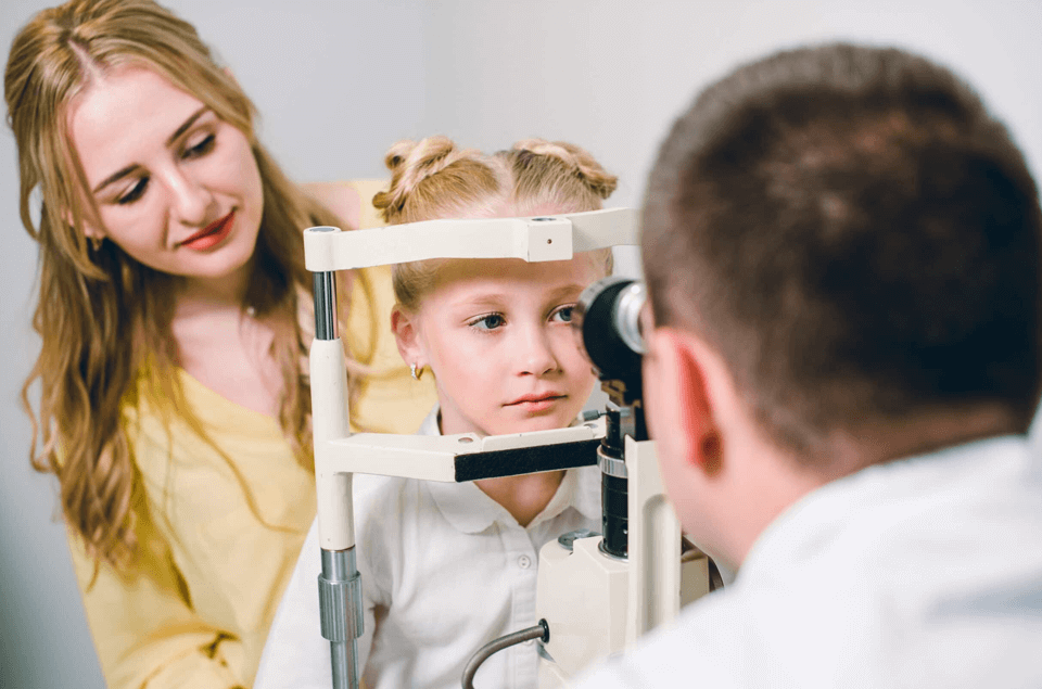 Dilating the infant’s pupils.